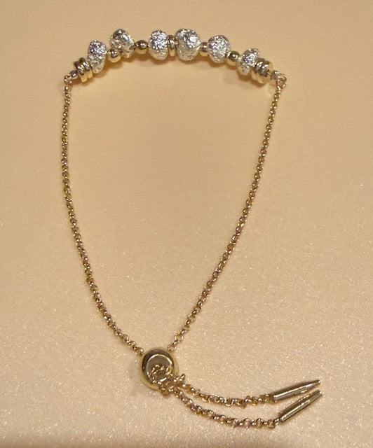 Discover the perfect balance of elegance and versatility with this stunning slider bracelet, featuring natural silver lava gemstones paired with warm 18K gold-filled beads.